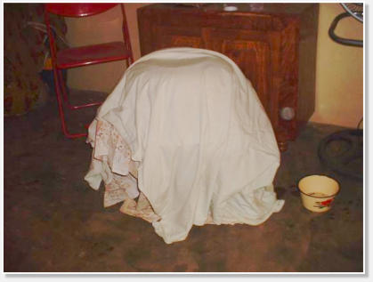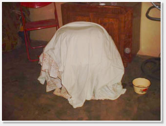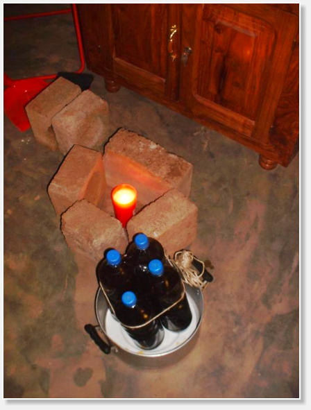 und Tüchern einen Fermenter, der durch eine 7 Tage lang brennende Kerze seine Wärme